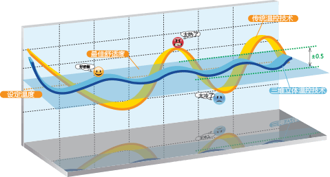 傳統(tǒng)多聯(lián)機依據(jù)室內(nèi)回風(fēng)溫度控制室內(nèi)溫度,Hi-MultiM2系列追加了有 線遙控器溫度傳感器和出風(fēng)溫度傳感器*,通過出風(fēng)溫度傳感器、回風(fēng)溫度傳感器和控制器溫度傳感器的感測溫度綜合測算室內(nèi)溫度,可以使溫度傳感器的溫度更接近室內(nèi)溫度,并通過2000級的高精度電子膨脹閥調(diào)節(jié)冷 媒流量,在滿足室內(nèi)溫控設(shè)定精度±0.5℃的同時,同時將出風(fēng)溫度控制在優(yōu)異的范圍,更好的滿足人體舒適性。