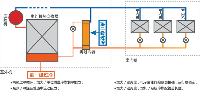 雙級過冷技術(shù),增大制冷能力和配管總長