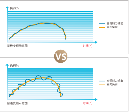 運轉(zhuǎn)速度可以根據(jù)系統(tǒng)容量的變化進行連續(xù)、自由調(diào)節(jié),精度更高,與自適應(yīng)控制技術(shù)相結(jié)合,根據(jù)實際空調(diào)負荷自動調(diào)節(jié)能力輸出,保證達到更平滑的變化曲線來滿足更高需求的舒適度。