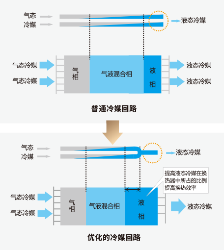 特殊設(shè)計的2-1換熱冷媒流程,大幅優(yōu)化換熱效率。