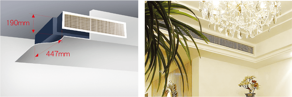 超薄機(jī)身,為您提供更高空間。 淺進(jìn)深,適應(yīng)淺吊頂安裝。 全系列產(chǎn)品機(jī)身厚度僅為190mm,進(jìn)深僅為447mm,可輕易安裝在高度較小、吊頂寬度較窄的場(chǎng)所,極大節(jié)省吊頂面積。