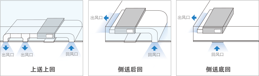 嵌入機(jī)采用四面廣角環(huán)繞360°立體送風(fēng)方式,由頂部送風(fēng),氣流自上而下均勻覆蓋,不受阻擋,送風(fēng)無(wú)死角,冷熱分布均勻,送風(fēng)更廣更舒適。