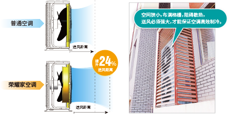 夏季高溫的那幾天,空調(diào)似乎不給力了? 原因如同“電腦過熱運(yùn)行放緩”一樣,空調(diào)室外機(jī)機(jī)組溫度過高,散熱不暢, 嚴(yán)重影響了制冷效果。 海信榮耀家對風(fēng)道進(jìn)行優(yōu)化,大幅提升送風(fēng)距離,提升24%。 遠(yuǎn)距離送風(fēng)高效提升了散熱效果,確保機(jī)組可以應(yīng)對高溫酷暑天氣,為家 庭制造舒適宜人的涼爽室溫。