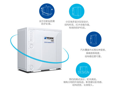精細(xì)化外觀結(jié)構(gòu)設(shè)計(jì),盡顯美式高品質(zhì)。 強(qiáng)效高能效,IPLV(C)值最高可達(dá)10.10。 約克品牌高效能渦旋壓縮機(jī),進(jìn)口品質(zhì),動(dòng)力強(qiáng)勁可靠。 5~50℃寬廣運(yùn)行溫度范圍,冷熱源穩(wěn)定,機(jī)組不受氣候影響。 機(jī)組放置靈活,有效提高空間利用率。