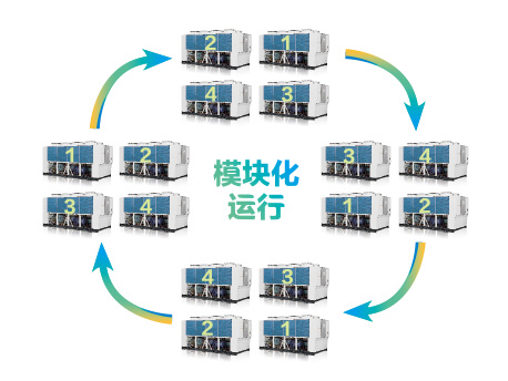 淡化主、子模塊設(shè)計,任意單元模塊均可作為主模塊,輕松應(yīng)對各種突發(fā)情況;不同容量的單元模塊可以任意組合,從而形成不同冷量的機組,應(yīng)用范圍廣;單一模塊內(nèi)任意一臺機組出現(xiàn)故障,模塊內(nèi)其他機組不受影響,保證整個系統(tǒng)的冷量供應(yīng)。